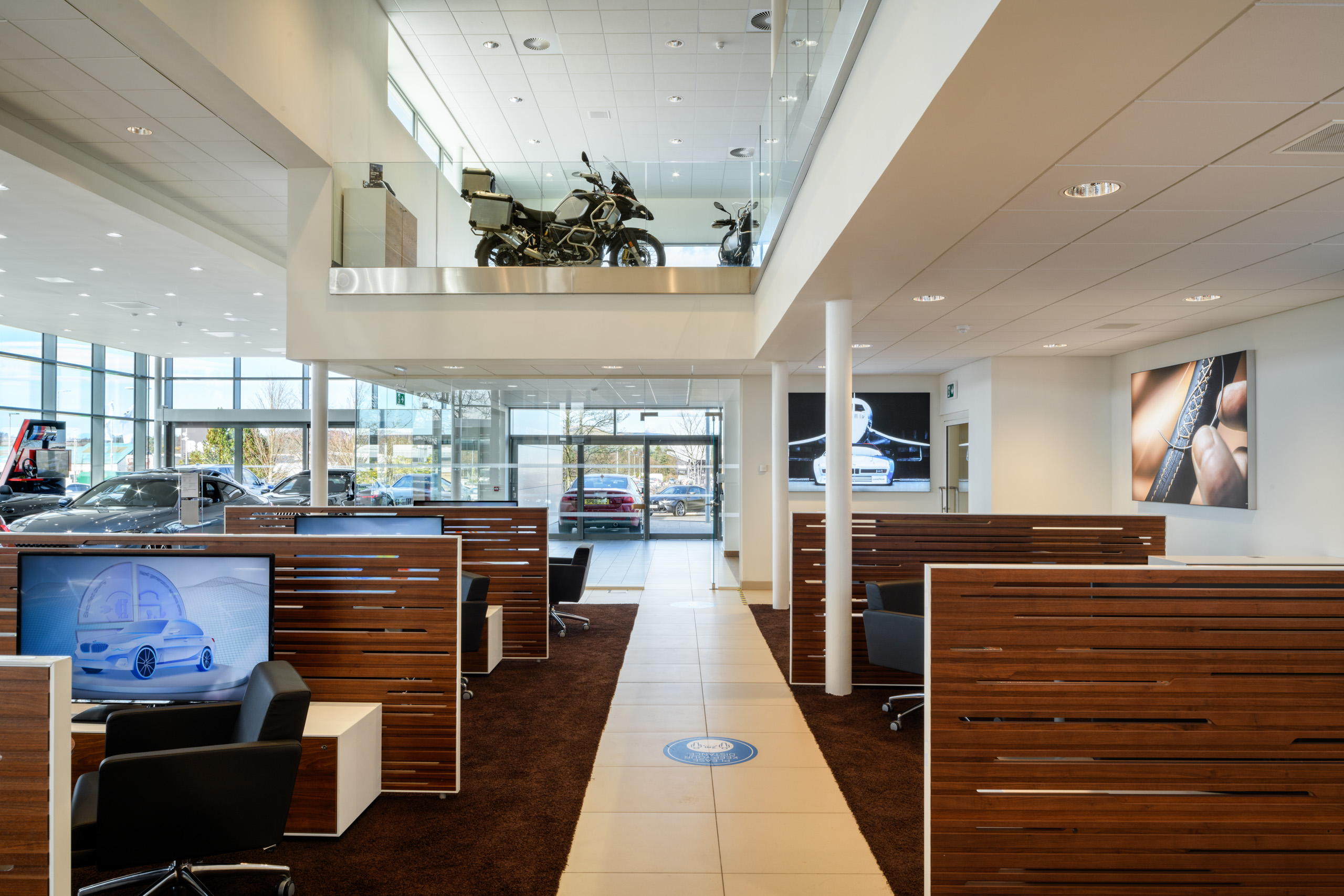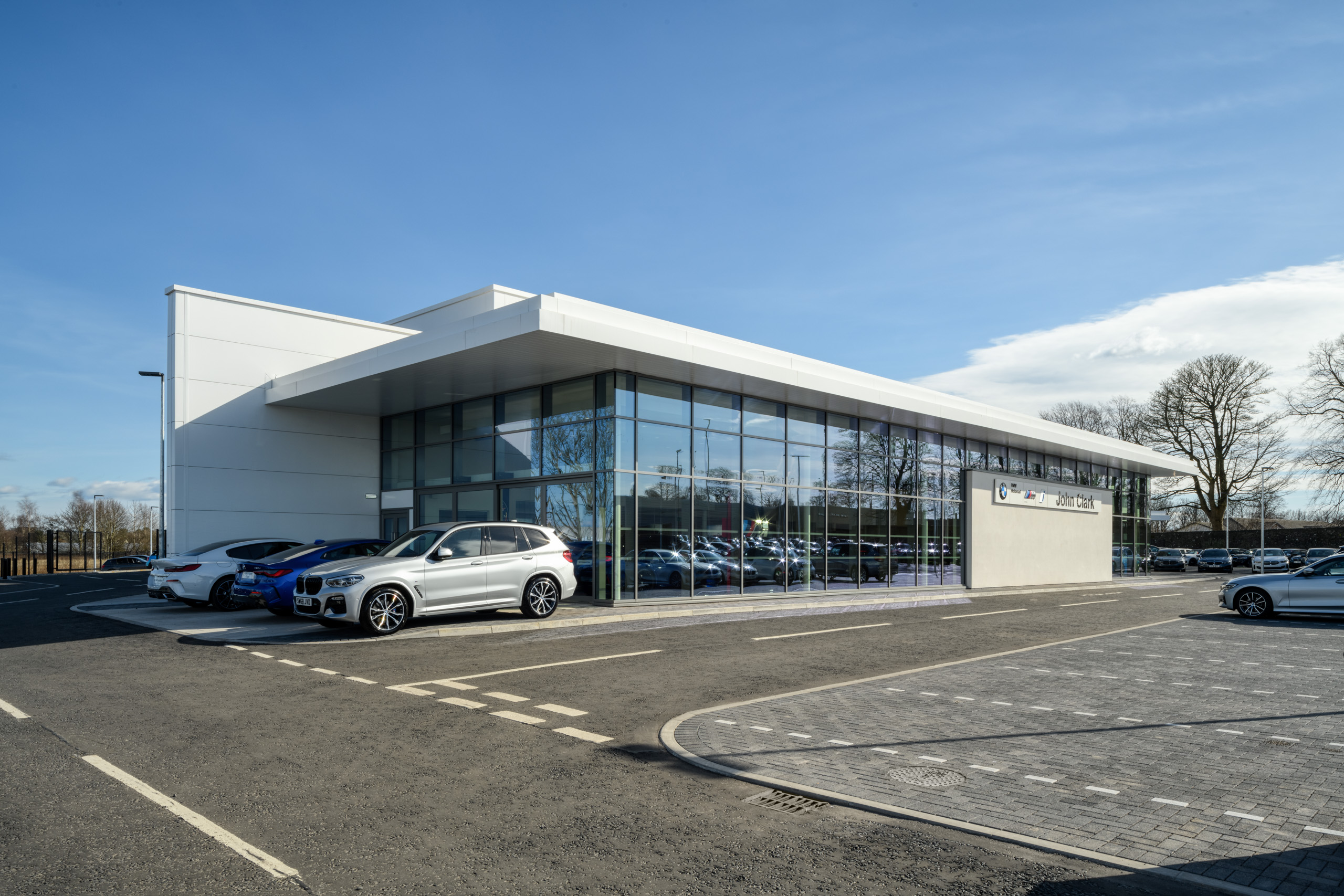 A new BMW and Motorrad dealership designed in conjunction with the BMW panel architects ATA Design, for the John Clark Motor Group completed in February 2021.