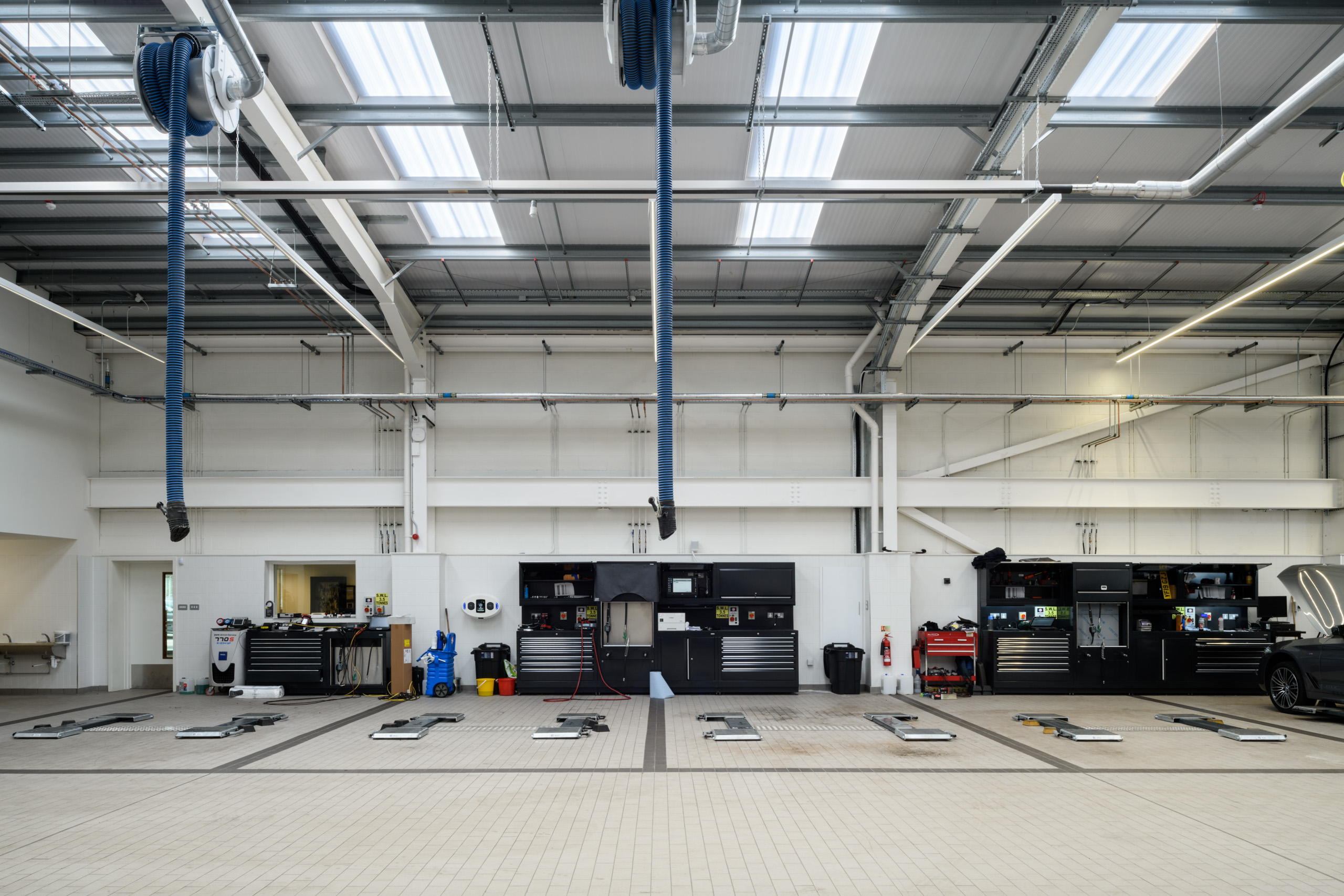 The development totalling 32,000 square feet includes a 12 car showroom at ground level with a 13 bike showroom at first floor, a 20 bay workshop, parts, offices, drive thru reception and a separate valet building that accommodates 277 customer, service, and used car sales within the site. The striking elevation fronts onto Kings Cross Road a major arterial route into Dundee opposite the Jaguar Land Rover and Audi dealerships also designed for the John Clark Motor Group by McLaren Murdoch and Hamilton.