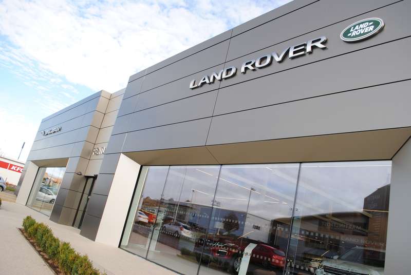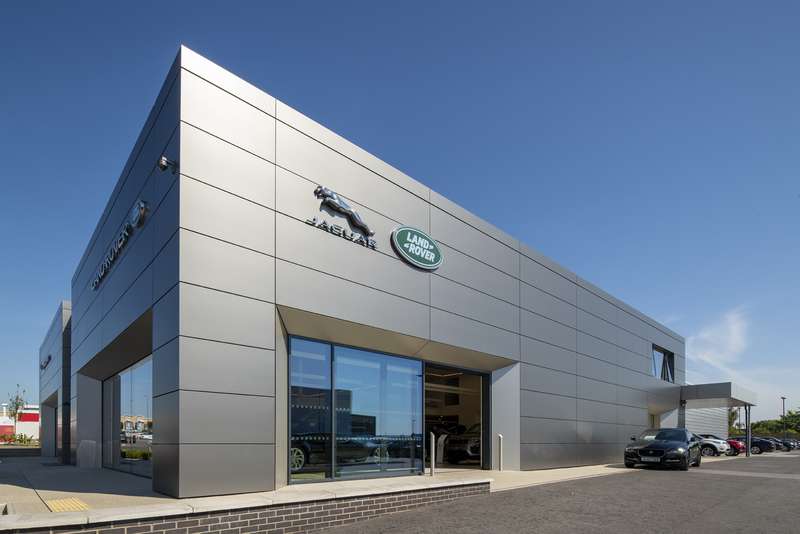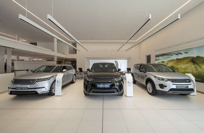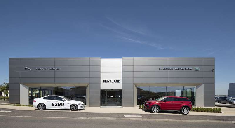 A new twin-brand Jaguar Land Rover showroom in Edinburgh's expanding Kinnaird South commercial district.