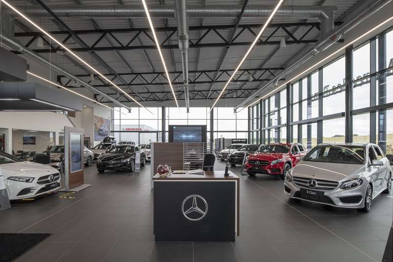 A major dealership relocation for the client group’s Mercedes-Benz franchise, the project involved the construction of a large new facility incorporating the brand’s new corporate identity standards, situated in the expanding Kinnaird South commercial zone on Edinburgh’s south-east fringe.