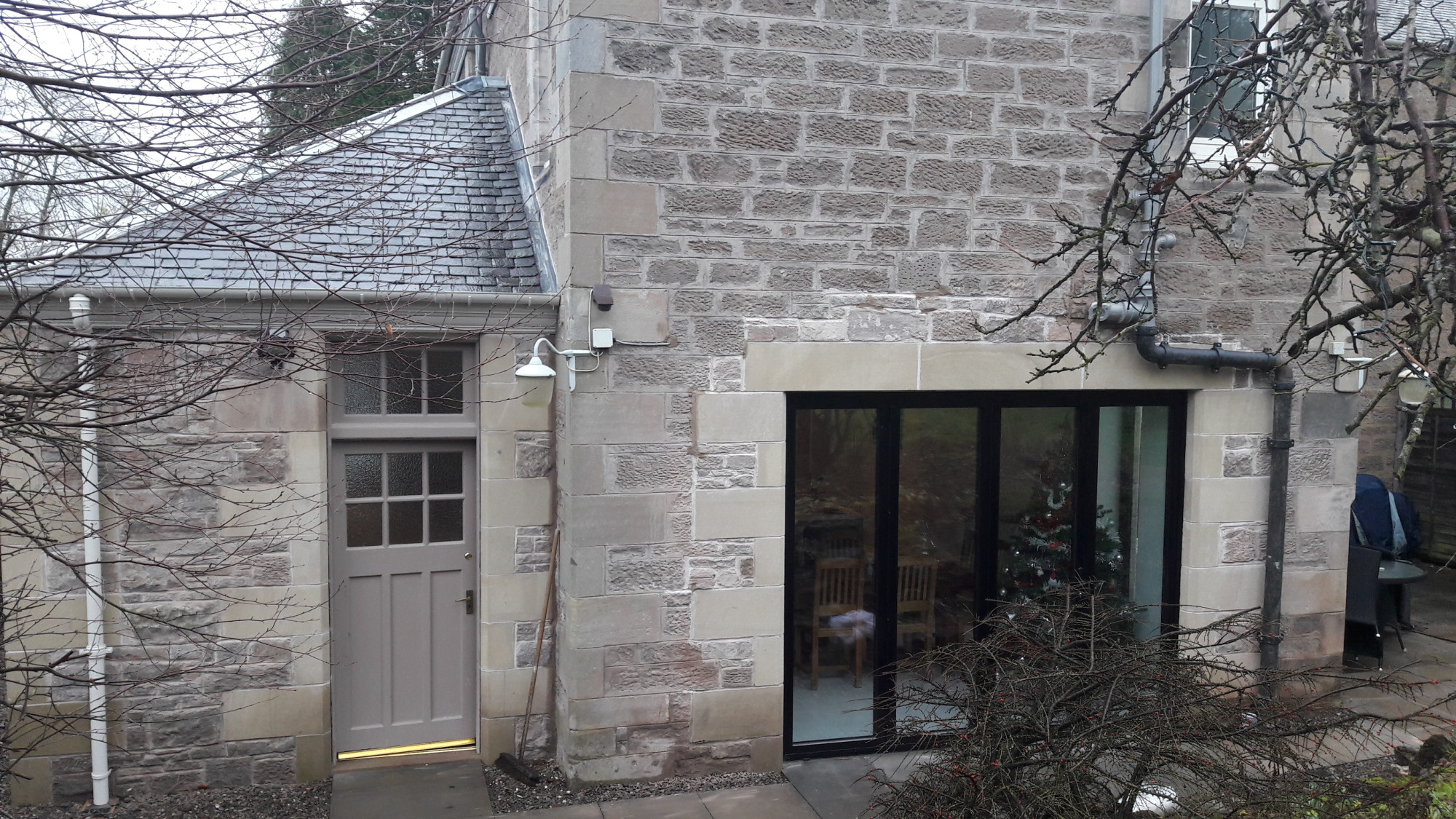 The extension has been built using traditional natural stone and slate roof to tie in with the existing property.