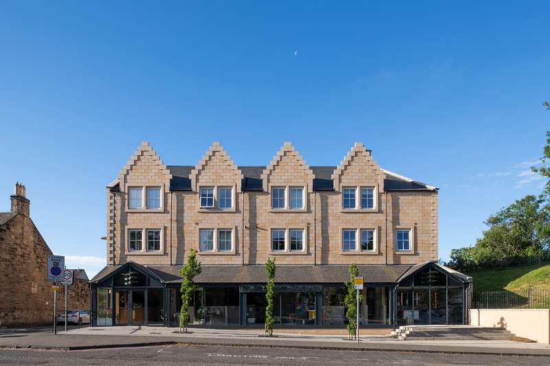 An infill development on a former filling station site within a west Edinburgh conservation area, the project entailed the construction of eight studio flats above a speculative commercial space with a shared roof terrace behind connecting into the adjacent Green Path network.