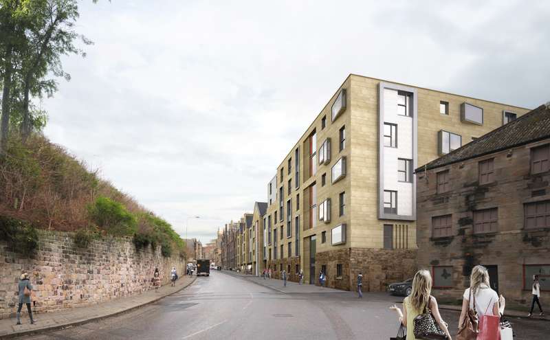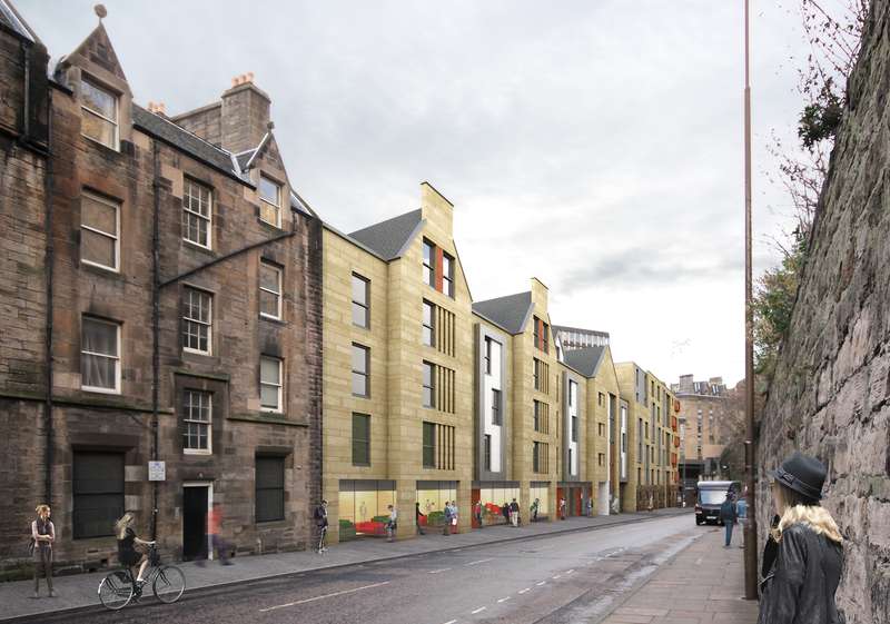 A proposal for student accommodation and community facilities on a key city regeneration site on King's Stables Road, bordering Edinburgh's historic Old Town.